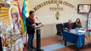“Si bien el santo nacido en Montpellier es parte de una lógica europea; Tarija lo ha asumido como propio, lo ha modificado, lo ha diversificado hacia nuestra forma de convivencia como provincia, como valle central, como forma de ver la vida”, explicó el alcalde tarijeño en conferencia de prensa en el Patio Cultural del Ministerio de Culturas y Turismo (MCyT).