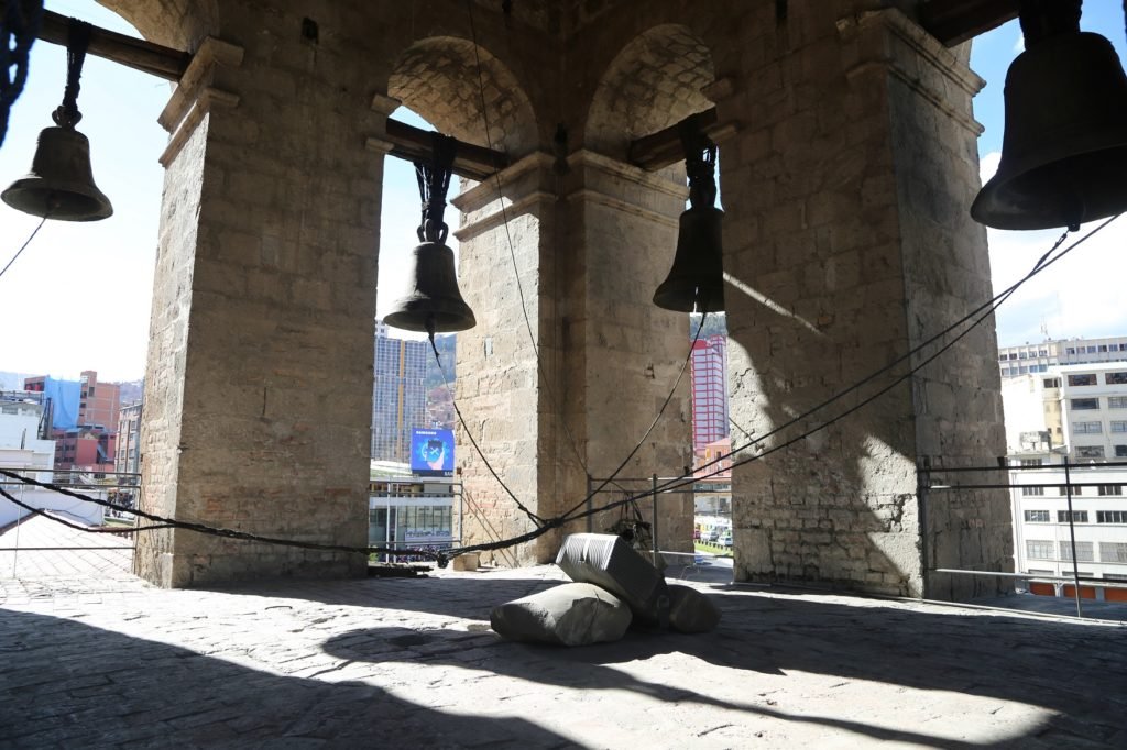 El proyecto “Conservación de la Basílica Menor de San Francisco y restauración del campanario” busca que las 12 campanas de la iglesia paceña vuelvan a sonar. A través del trabajo —uno de los ganadores del Fondo Concursable Municipal de las Culturas y las Artes (FOCUART)— también se restaurará dos niveles del campanario y se habilitará dos salas para el museo del conjunto patrimonial.