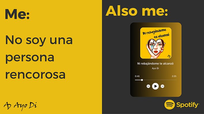 - Disponible en Spotify y todas las plataformas de streaming: “Ni rebajándome te alcanzó” de Ayo Di.