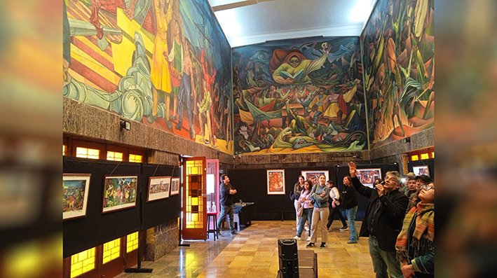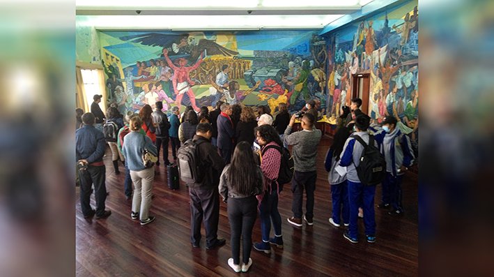 Posteriormente, el grupo se dirigió hasta la Facultad de Medicina de la UMSA, donde está la obra «El Cristo de la Higuera». Y finalmente el grupo visitó la Facultad de Artes de la UMSA, donde se halla un mural inconcluso.