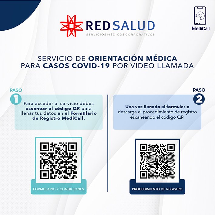 Para acceder al servicio sólo es necesario escanear un código QR, disponible en la página de Facebook de RED SALUD, donde el usuario debe llenar sus datos en el formulario de registro y seguir las sencillas instrucciones en línea, además de descargar la app MediCall en PlayStore o AppleStore.