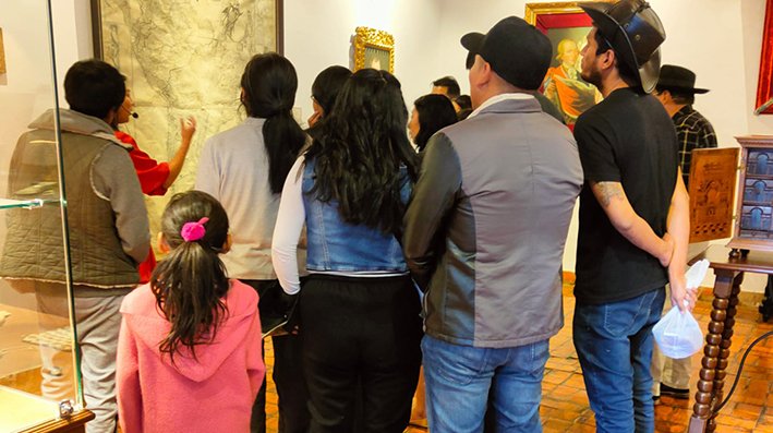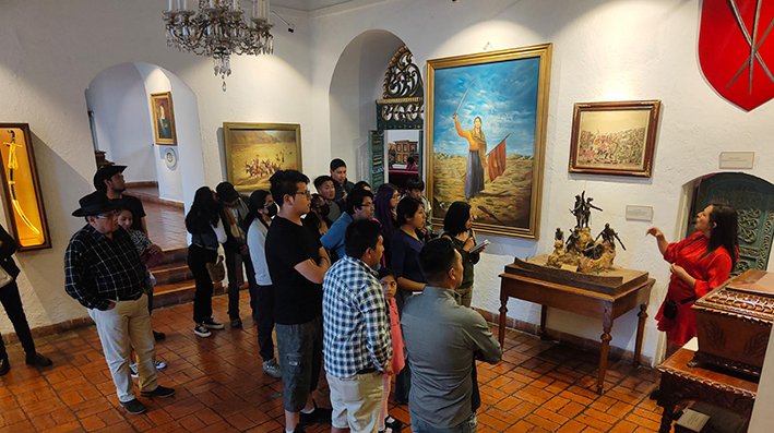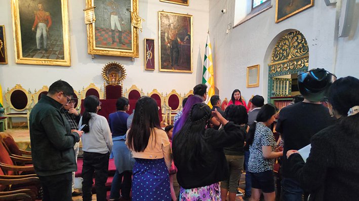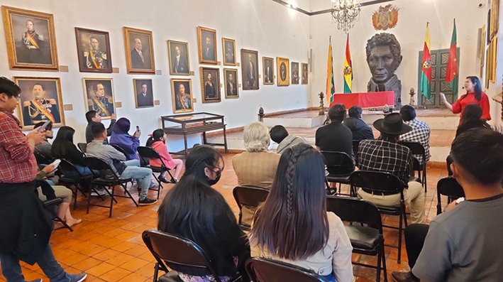La casa de todos los bolivianos y templo cívico de la bolivianidad que recibe miles de visitantes al año, tanto bolivianos como extranjeros, fue el destino siguiente de los estudiantes, donde recibieron una cálida bienvenida por el director de este Repositorio Mario Linares Urioste, quien remarcó la importancia de que la juventud conozca más de su propia historia, por lo que los universitarios guiados por Marilia Mita recorrieron las salas de este Repositorio, como el Salón Independencia, lugar donde se firmó el acta que dio a luz a la Patria.