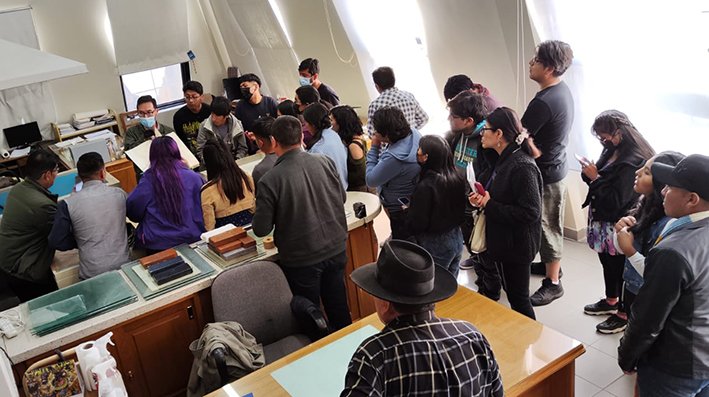 El sábado 3 de mayo, estudiantes de la materia de Archivística de la carrera de Historia de la Universidad Mayor de San Andrés (UMSA), junto a su docente y también presidente de la Fundación Cultural del Banco Central de Bolivia, Luis Oporto Ordoñez, visitaron el Archivo y Biblioteca Nacionales de Bolivia (ABNB) y Casa de la Libertad (CDL), como parte de un viaje de estudios a los archivos y biblioteca de los repositorios nacionales dependientes de la FCBCB en Sucre.