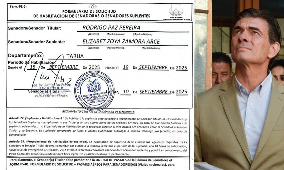 La Cámara de Senadores oficializó la incorporación de Zamora en representación del departamento de Tarija, tras la presentación del Formulario PS-01, que permite la suplencia temporal en casos de ausencia del titular, de acuerdo con el artículo 24 del Reglamento General del Senado. La notificación fue registrada por la Primera Secretaría el 10 de septiembre a las 13:36 horas.