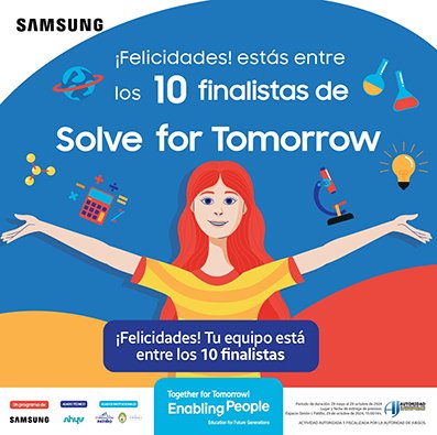 Octubre 2024. Luego de una evaluación exhaustiva de los proyectos propuestos, se anunciaron los 10 equipos que avanzan a la quinta etapa del programa Solve for Tomorrow (Soluciones para el Futuro) de Samsung. Estos grupos estudiantiles han enfocado sus proyectos en resolver problemas relacionados con el medioambiente, la salud y la educación.