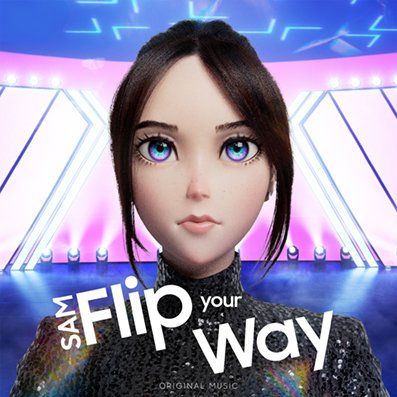 DICIEMBRE 2023. SAM debuta por primera vez con la nueva canción «Flip Your Way». Esta es la primera vez que Samsung cuenta con una influencer digital para lanzar un tema musical a nivel internacional.