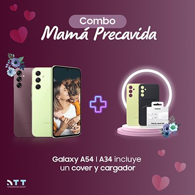 - Mamá Precavida: Por la compra de un Galaxy A54 o A34, un cover y un cargador.
