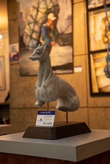 Este nuevo ciclo se inició con la exposición de las obras del escultor paceño, Pastor Villanueva Apaza, artista plástico con más de 18 años de experiencia, quien ha encontrado en la escultura en piedra granito una forma de expresión de sus ideas. En sus numerosas obras talladas en uno de los materiales más duros y resistentes del mundo aborda temáticas de animales, destacándose “Galgo”, “Fantasma”, “Aragnee”, entre otras.