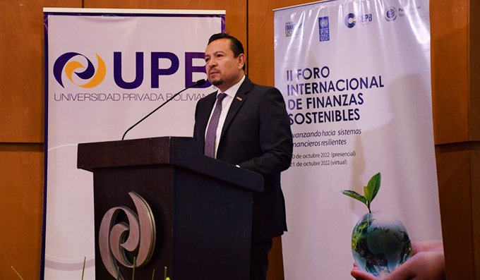 La Confederación de Empresarios como representante del Pacto Global en Bolivia junto al Programa de las Naciones Unidas para el Desarrollo en Bolivia y el apoyo de la Universidad Privada Boliviana (UPB), se dieron encuentro en el II Foro Internacional de Finanzas Sostenibles en Bolivia “Avanzando hacia sistemas financieros resilientes”, realizado en la sede de Postgrado de la Universidad los días 20 y 21 de octubre del presente año.