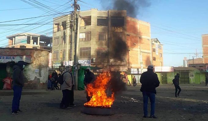 2do día de bloqueo de #PadresdeFamilia en la ciudad de #ElAlto.