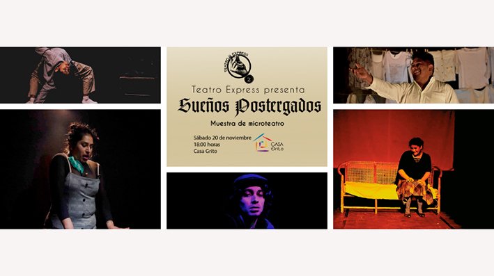“Sueños postergados” es el título de la muestra que cerrará la segunda temporada de microteatro que organiza la plataforma Teatro Express. La función especial contará con la presentación de cinco artistas y cinco piezas, se realizará el sábado 20 de noviembre, a las 18:00, en Casa Grito (calle José María Zalles #939, Calacoto).
