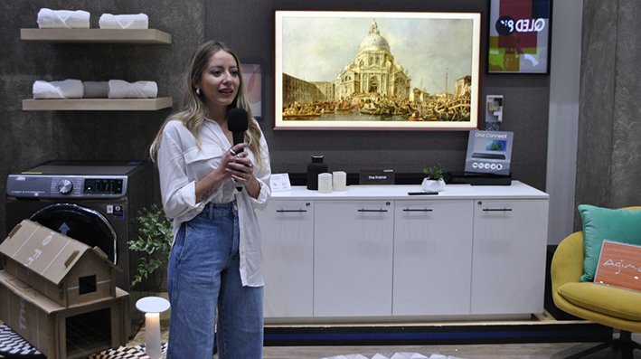 “Creo que cambia la experiencia de disfrutar no solamente el diseño en tu casa, sino también la tecnología”, destacó la diseñadora de interiores, respecto a las cualidades de la nueva The Frame.