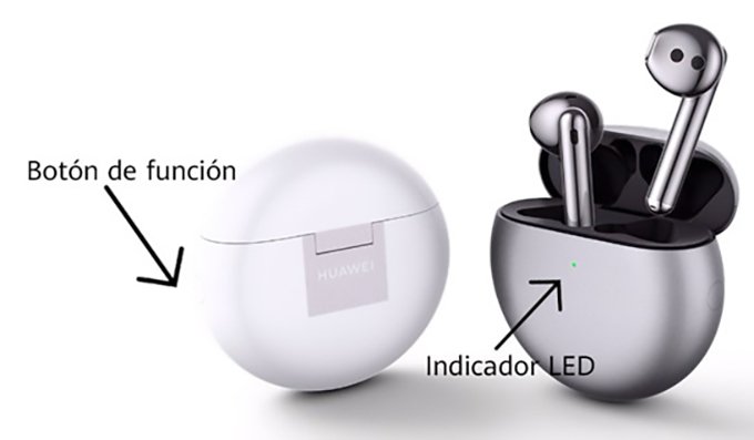 - Primero asegúrate de activar el modo de búsqueda de dispositivos para emparejamiento Bluetooth en el dispositivo en el que quieres utilizar tus Huawei FreeBuds 4. La caja de los auriculares tiene dos elementos que debes identificar; el indicador LED que está en la parte frontal, y el botón de función que se encuentra en el costado derecho.