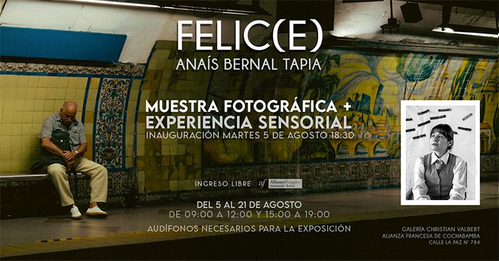 El pasado martes 5 de agosto, la Alianza Francesa de Cochabamba fue el escenario de la inauguración de la exposición fotográfica «Felic(e)» de la artista Anaís Bernal Tapia. La muestra, que estará abierta al público hasta el 21 de agosto, propone un recorrido íntimo y sensorial que va más allá de la simple observación.