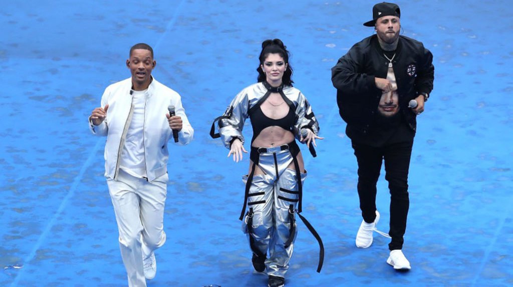 Como ya es costumbre en cada Mundial, la canción oficial sonó en la ceremonia de clausura. A partir de esto es que, con tan solo 10 minutos para lograr amenizar la cancha del estadio Luzhniki en Moscú, Rusia, salieron ni más ni menos que Will Smith, Nicky Jam -quien por cierto usaba una playera con la cara de J Balvin- y Era Istrefi, una cantante de Albania que poco a poco ha ido adquiriendo presencia dentro de la música. Juntos cantaron “Live It Up”, la canción oficial del Mundial de Rusia 2018.